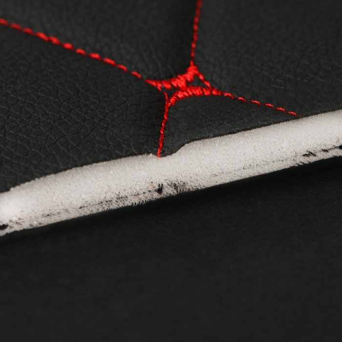 Материал, из которого изготовлена обшивка, представляет собой комбинацию кожзаменителя и поролона. Ромбовидный узор и красная строчка придают изделию стильный и элегантный вид. Благодаря этим особенностям, обшивка салона автомобиля становится не только функциональным элементом, но и ярким акцентом в интерьере автомобиля. Кожзаменитель обладает высокой прочностью и устойчивостью к истиранию, что гарантирует долгий срок службы обшивки. Поролоновая подкладка обеспечивает мягкость и комфорт при контакте с кожей водителя и пассажиров.