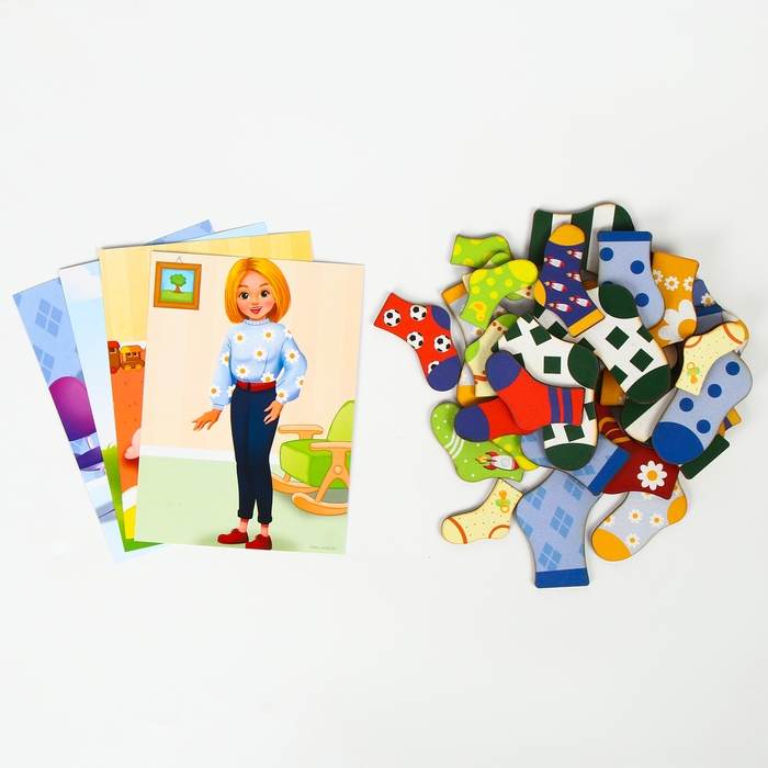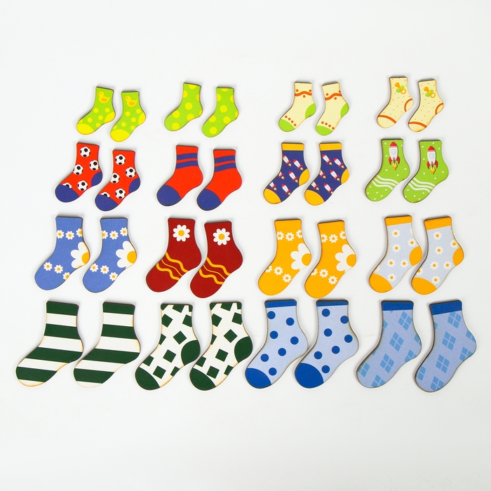 Переверни носочки рубашкой вверх. Перемешай и найди два одинаковых носка.