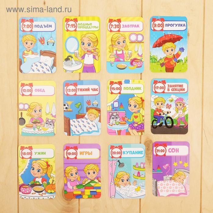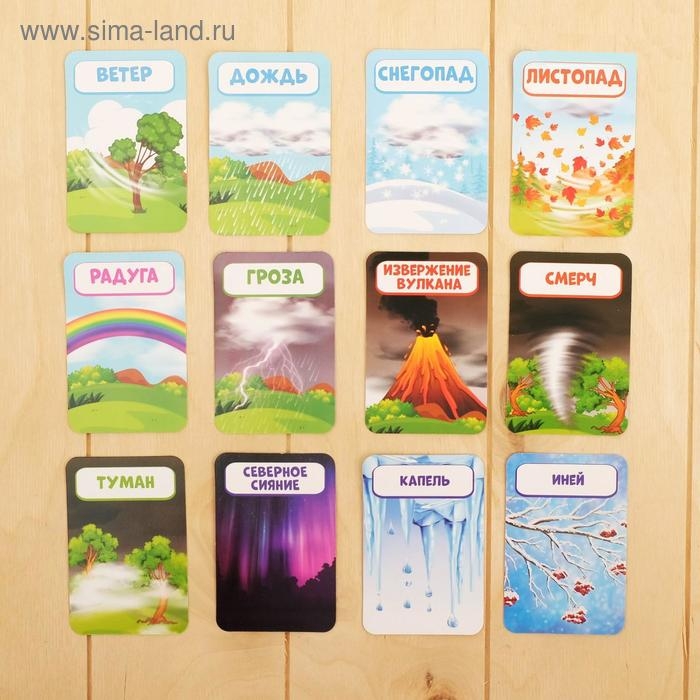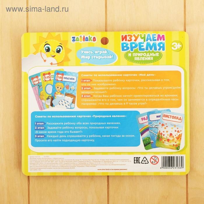 С обучающими часиками ребёнок научится определять время. А с помощью ярких карточек узнает о распорядке дня и запомнит, какие бывают природные явления.