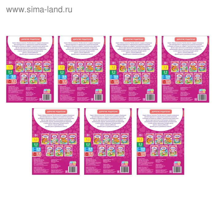- В набор входит 7 ярких увлекательных книг по 14 страниц в каждой.