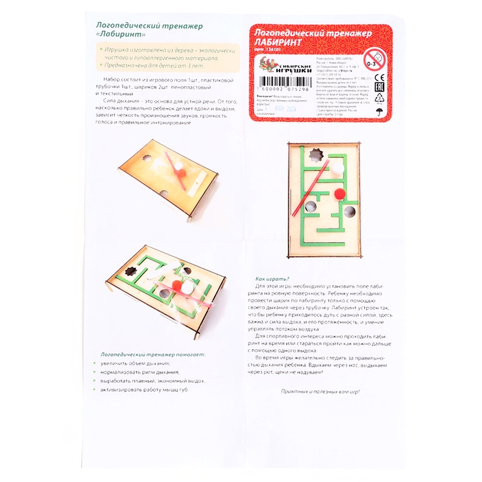 - Разработан для развития моторики и постановки речи у детей.