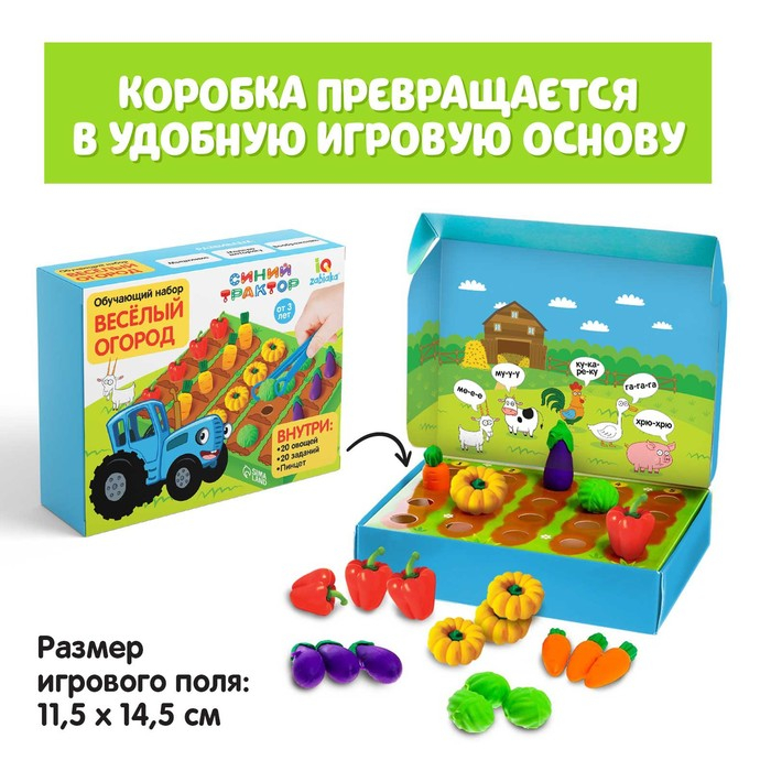 Обучающий набор «Мой весёлый огород», 40 фигурок, карточки, объёмное поле, по методике Монтессори, Синий трактор