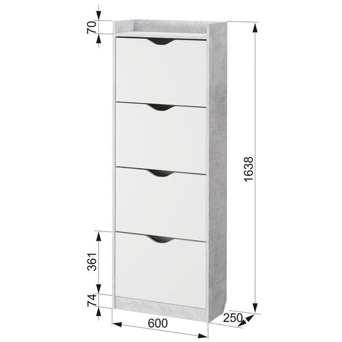 Обувница 64Б, 600х250х1620, Белое сияние/Цемент светлый