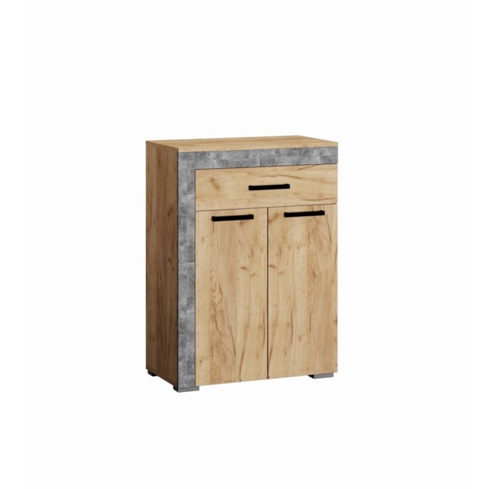 Обувница, 700х380х950, Дуб Крафт золотой/ателье светлое (Прихожая Галант) – это трендовое сочетание цветов, оригинальный дизайн и простота форм. В выдвижном ящике с шариковыми направляющими можно разместить важные предметы, ключи и аксессуары, вместительные ниши с распашными дверцами снизу вместят все необходимые обувь. Декор в виде оригинальной вставки цвета светлого ателье на фасаде дополняет дизайн обувницы и придает ей современный вид.