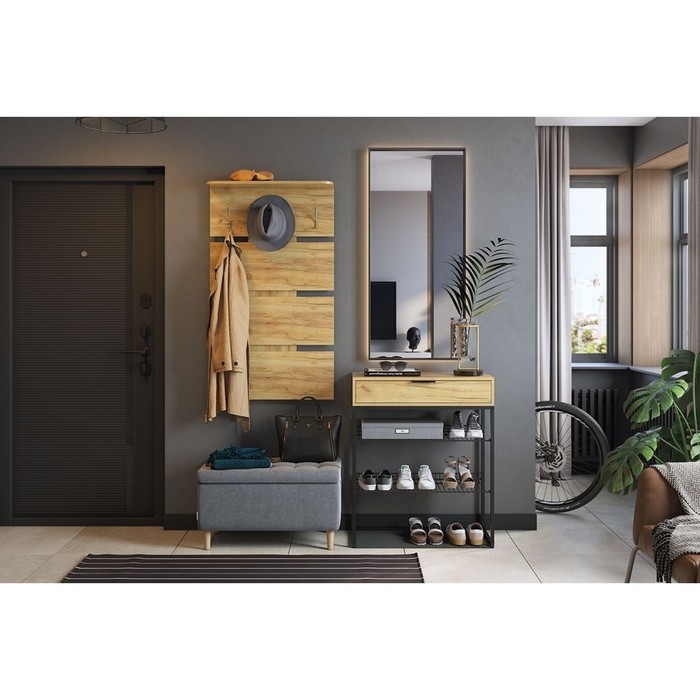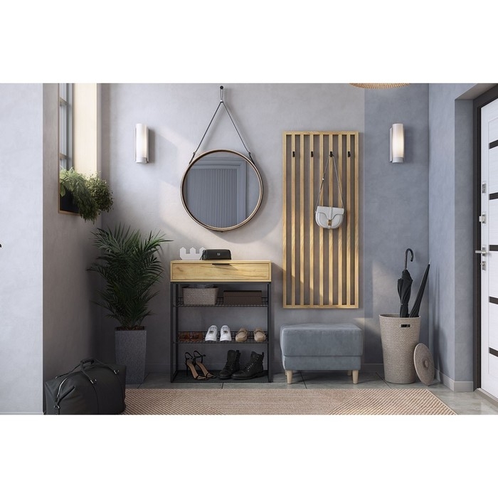 Обувница "Краш" 750х344х905, Черный муар/Дуб крафт золотой