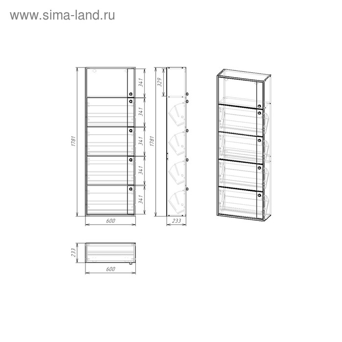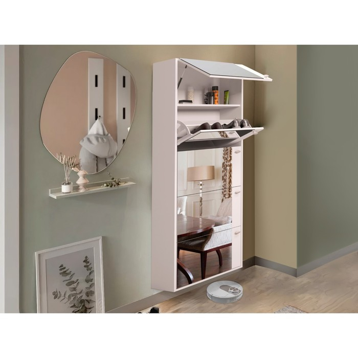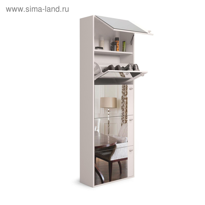Обувница Родная 5 ящиков с зеркалом, 600х230х1780, Белый