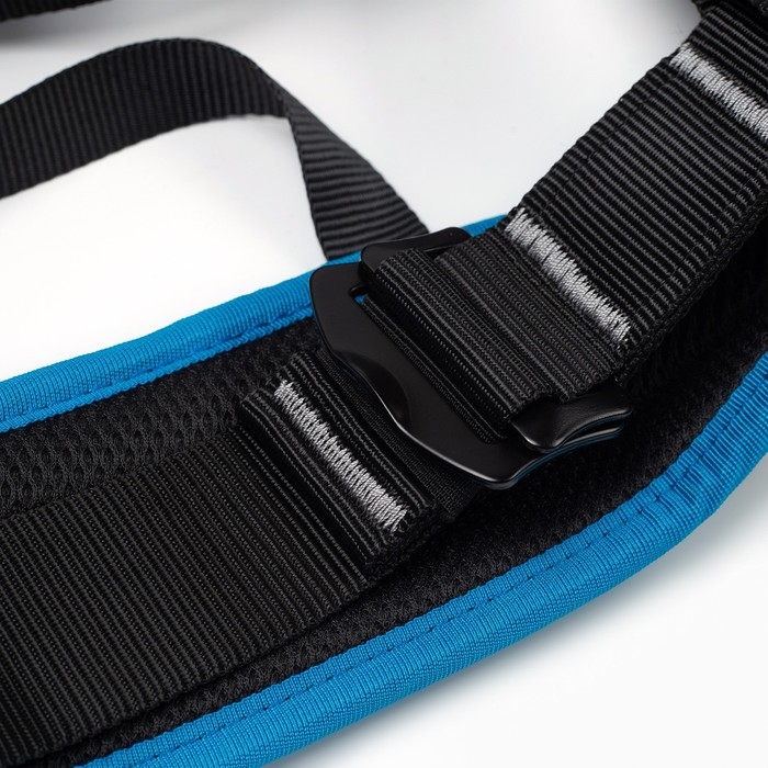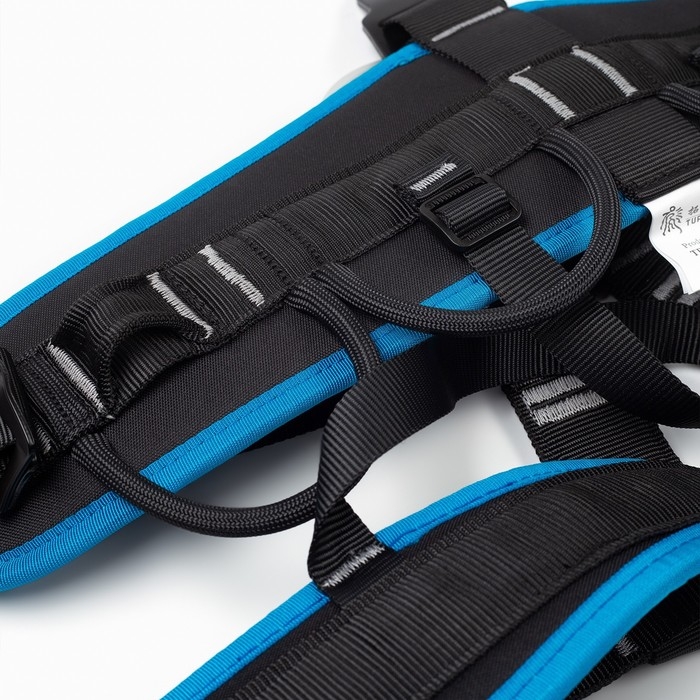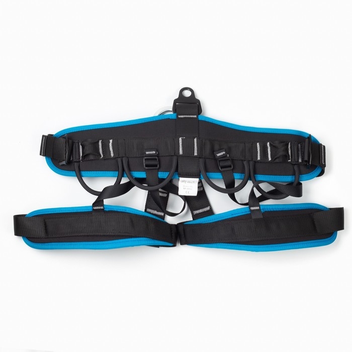 Лямки страховочного пояса регулируются, что позволяет подогнать его под любой размер и обеспечить надежную фиксацию на теле. Лямки обвязки имеют мягкую подкладку и не натирают кожу.