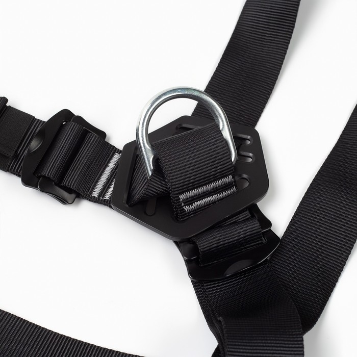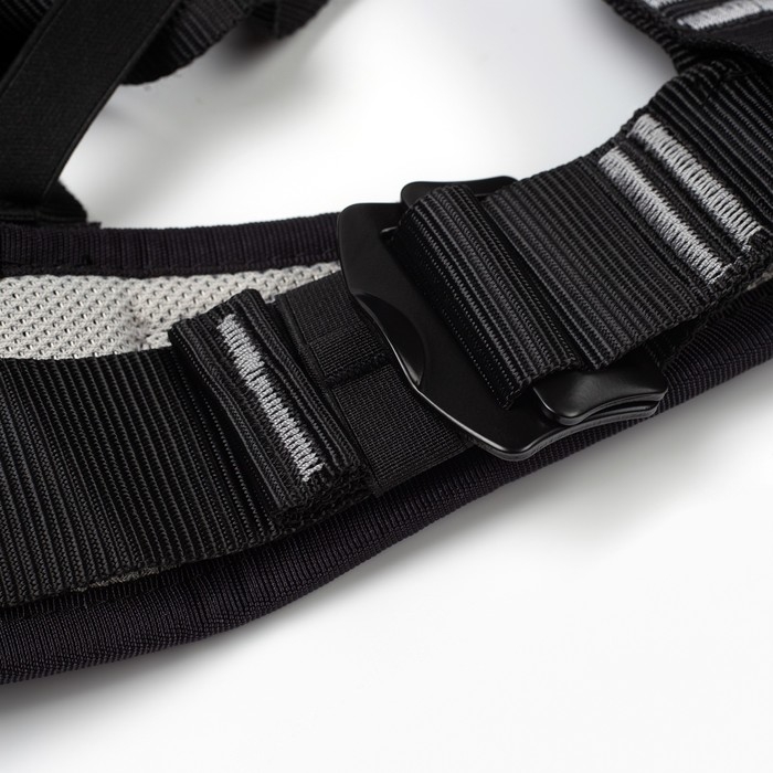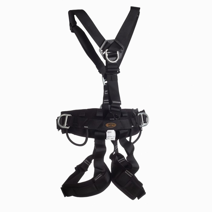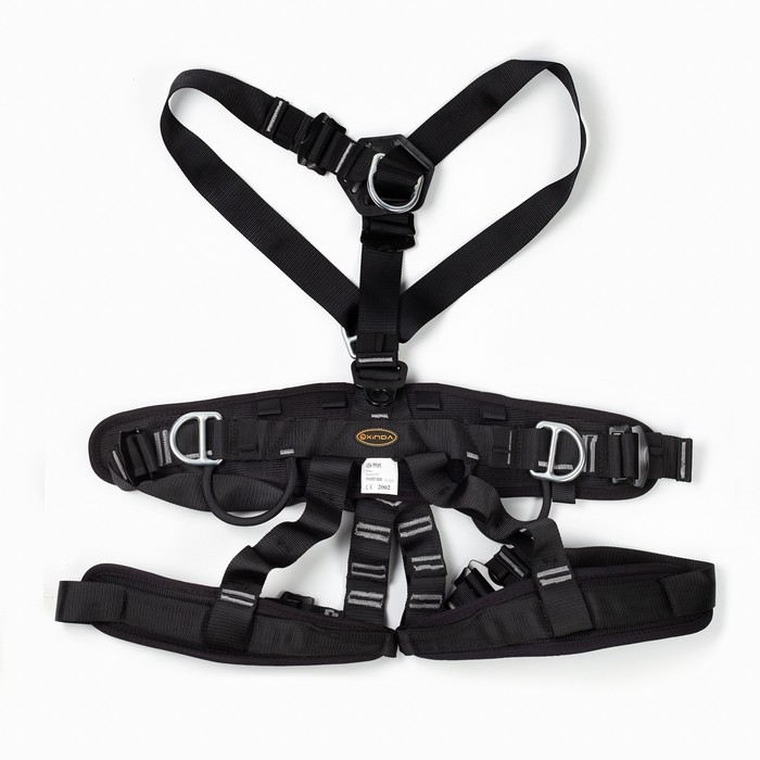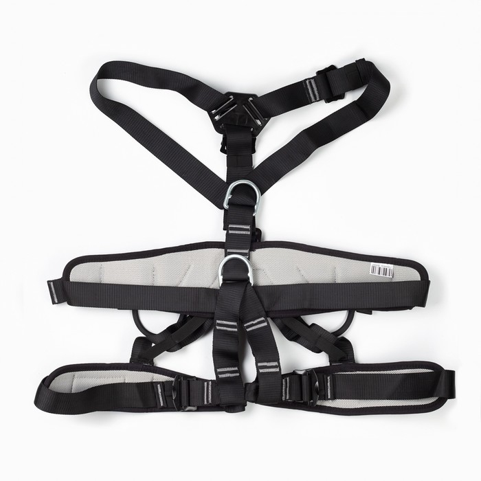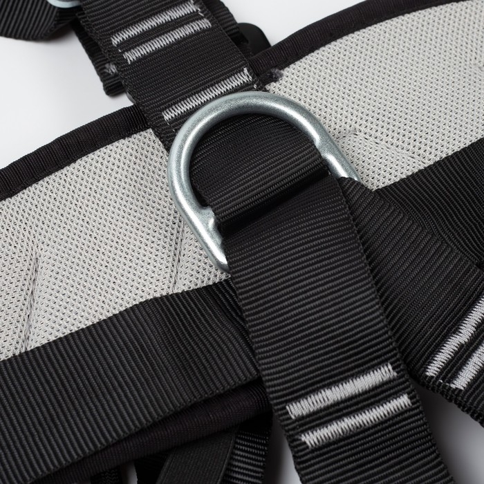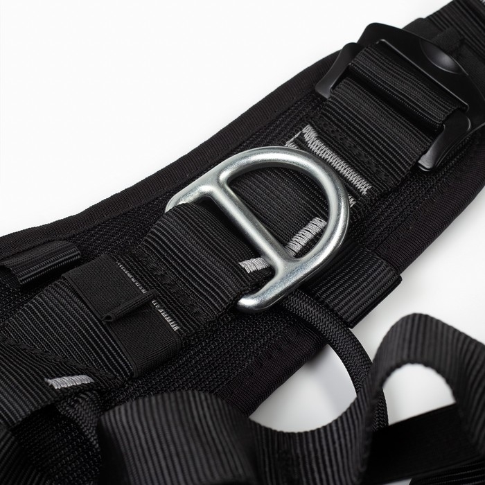 Лямки страховочного пояса регулируются, что позволяет подогнать его под любой размер и обеспечить надежную фиксацию на теле. Лямки обвязки имеют мягкую подкладку и не натирают кожу.