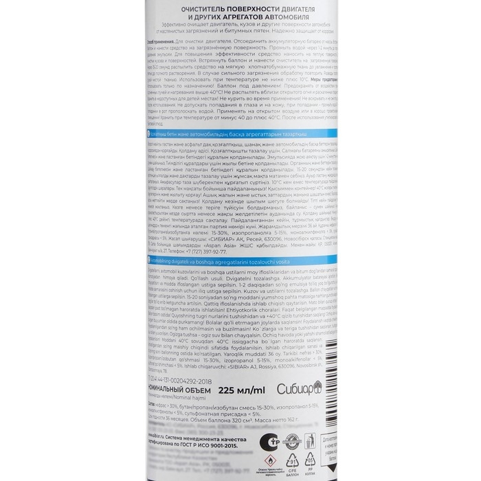 Данный очиститель представляет собой аэрозоль, который легко распыляется на загрязненные поверхности. В его состав входят специальные компоненты, которые быстро проникают в структуру загрязнений и размягчают их, что облегчает их удаление. После использования очистителя рекомендуется промыть систему охлаждения и другие системы двигателя чистой водой, чтобы удалить остатки загрязнений и самого очистителя. Кроме того, данный продукт также может использоваться для очистки других деталей автомобиля, таких как радиаторы, тормозные диски и колодки, детали подвески и т. д.
