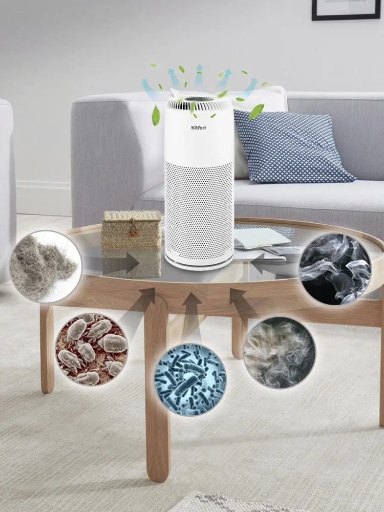 Очиститель воздуха Kitfort КТ-2813 — очищает воздух и создает более комфортные условия для дыхательных путей в помещении, а также помогает сохранять здоровье и хорошее самочувствие. Он предназначен для удаления из воздуха пыли, микробов, шерсти животных, табачного дыма, а вместе с ними аллергенов, бактерий и неприятных запахов.