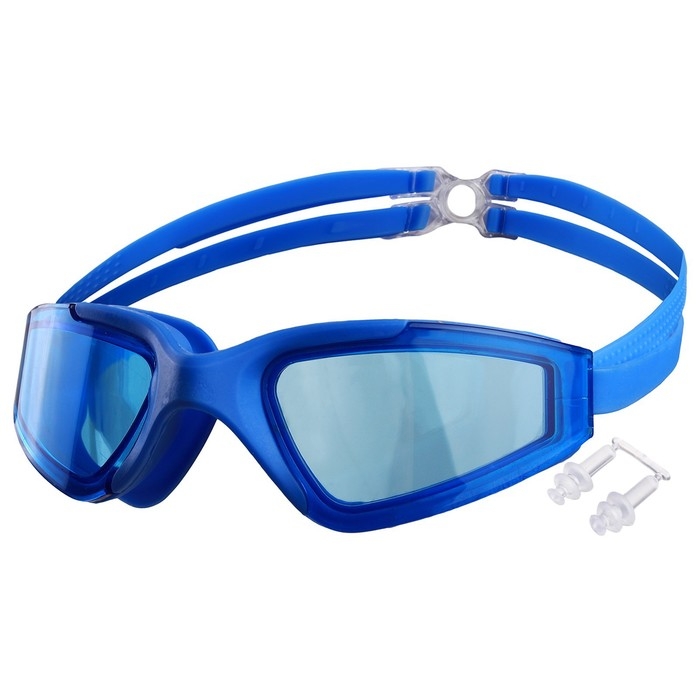 Очки для плавания детские «Акула», беруши, цвет синий