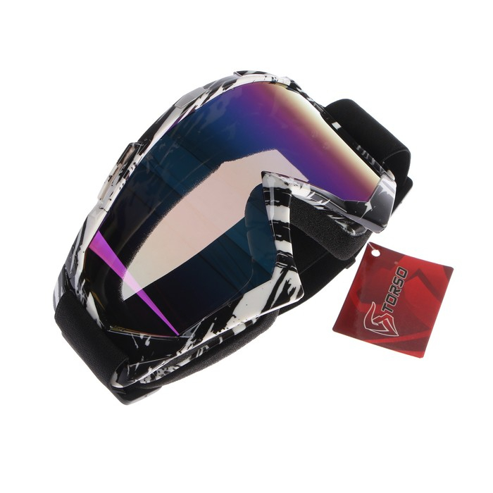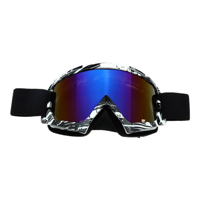 Очки-маска для езды на мототехнике, стекло сине-фиолетовый хамелеон, черно-белые, ОМ-18