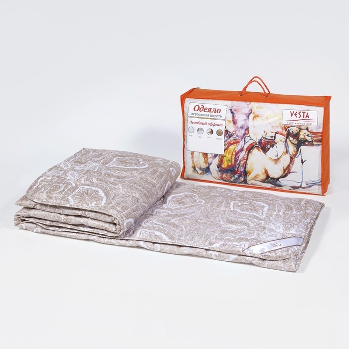 Одеяло облегченное 140х205 см, шерсть верблюда, ткань тик, п/э 100%