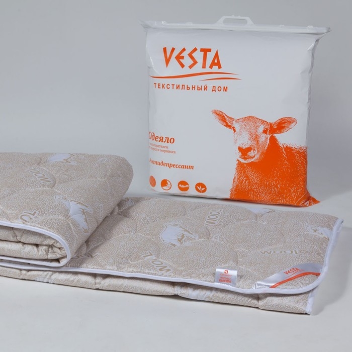 Одеяло "Этель" Овечья шерсть 140*205 см, тик, 300 гр/м2