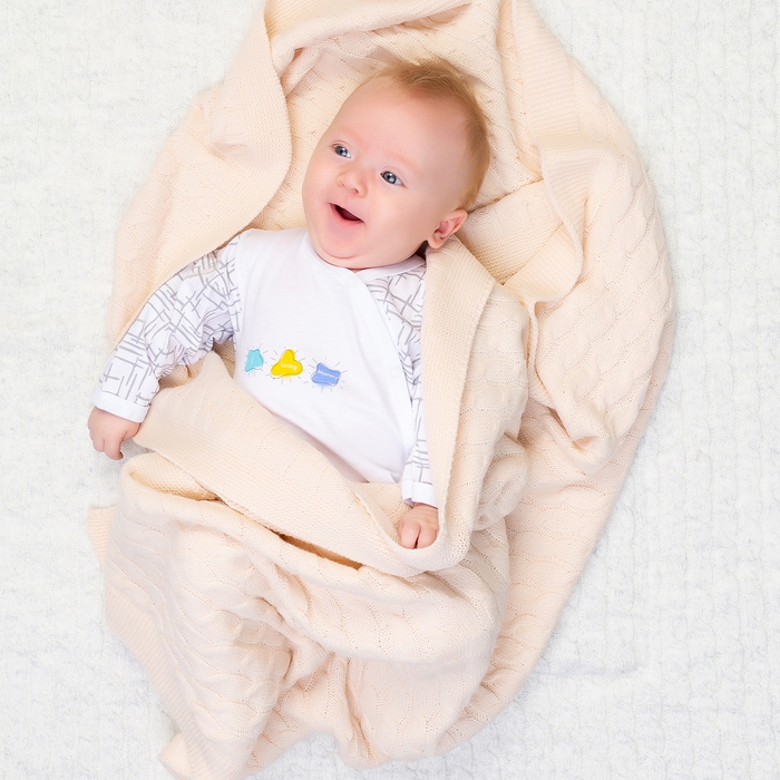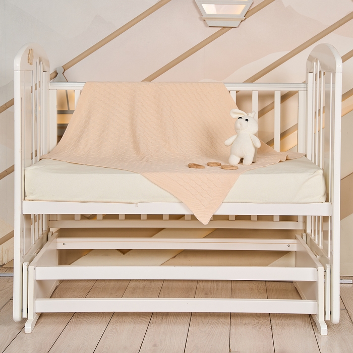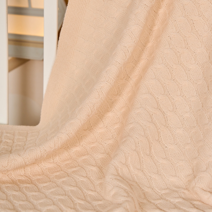 Одеяло-плед вязаное Косичка 95х110см, бежевый, 260г/м, акрил 81%, PVC 13%, полиамид 6%