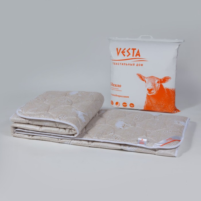 Одеяло станд. 220х205 см, шерсть мериноса, ткань глосс-сатин, п/э 100%