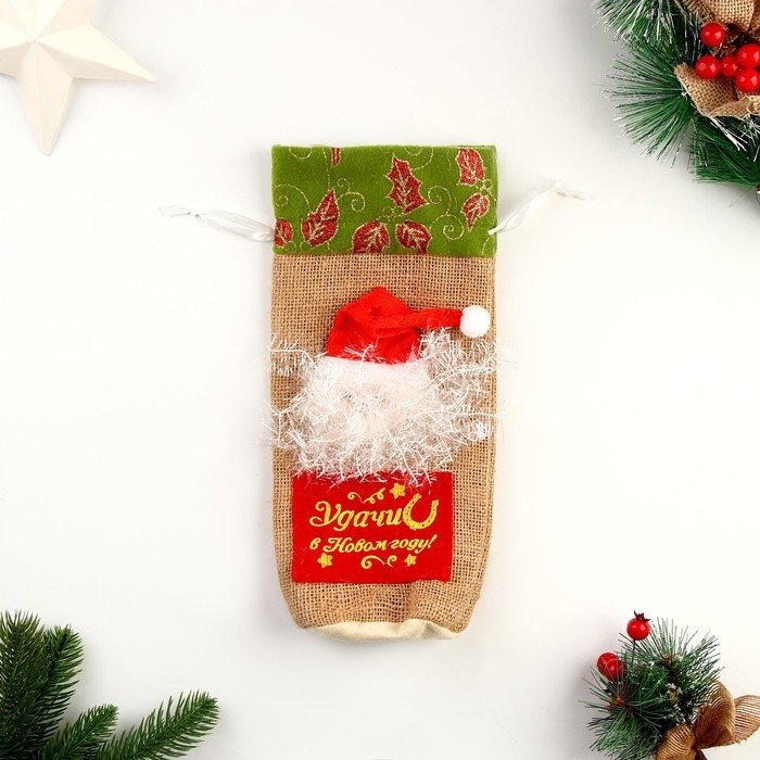 Создать новогоднюю атмосферу легко! Красочный мешочек с аппликацией в виде Деда Мороза — отличный вариант для упаковки подарочной бутылки. Нарядите презент и поставьте под ёлочку — в таком одеянии он точно выделится из всего многообразия новогодних сувениров.