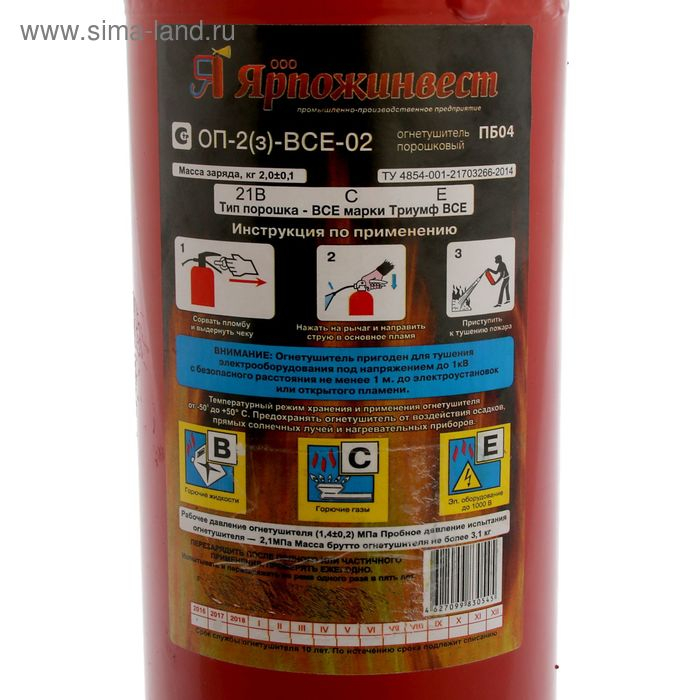 Огнетушитель порошковый "Ярпожинвест" ОП-2(3), BCE-02(А)