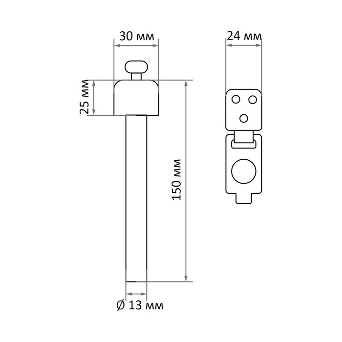 Ограничитель дверной с фиксатором 150 мм, крепление в бетон, цвет хром