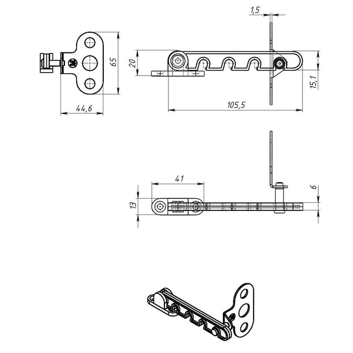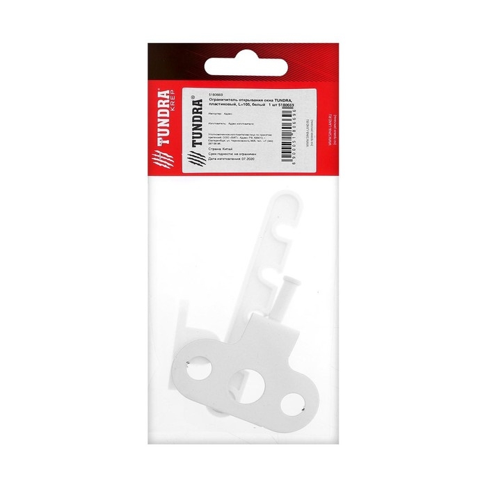 Ограничитель открывания окна ТУНДРА, пластиковый, L=105 мм, белый, 1 шт.