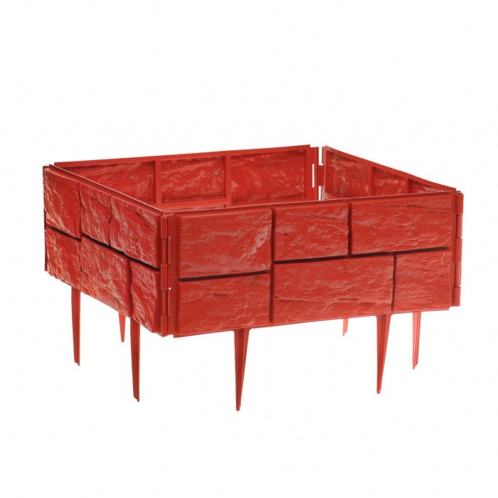 Ограждение декоративное, 24 × 177,5 см, 5 секций, пластик, терракотовое, «Камень»