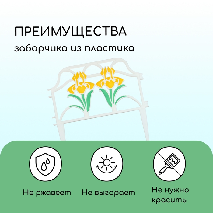 Ограждение декоративное, 30 × 280 см, 10 секций, пластик, цвет МИКС, «Ирисы»