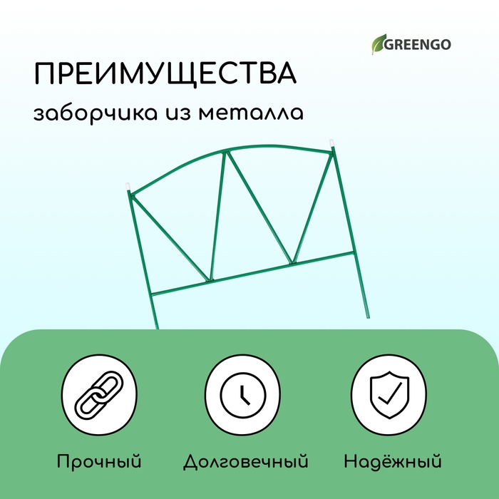 Ограждение декоративное, 60 × 325 см, 5 секций, металл, зелёное, «Арена»