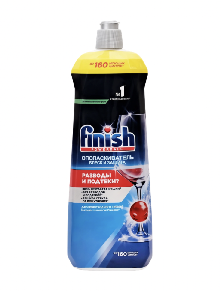 Польша. Ополаскиватель для посудомоечной машины FINISH успешно борется с подтеками и следами от капель на посуде, предотвращает образование известкового налета, а также значительно ускоряет процесс ее сушки.