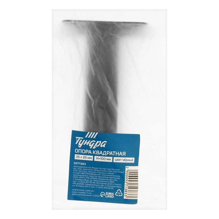 Опора квадратная OKV001BL ТУНДРА, d=25х25 мм, H=100 мм, цвет черный