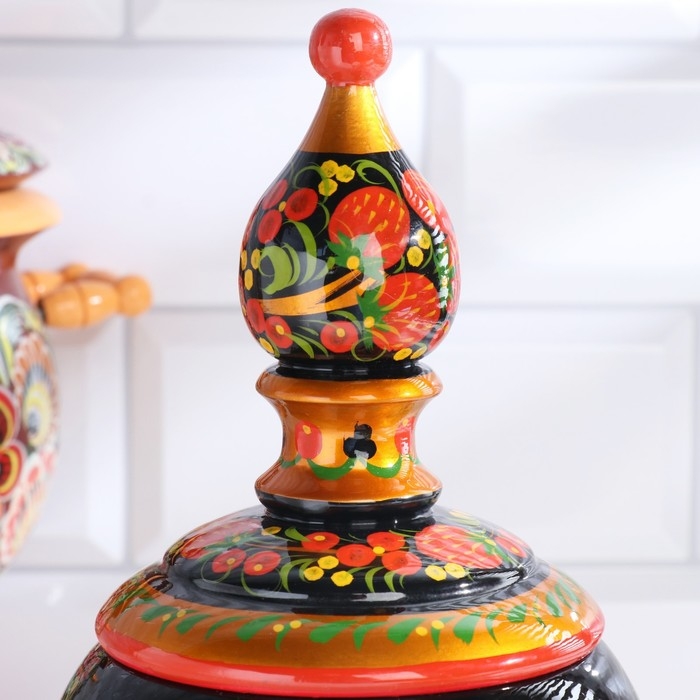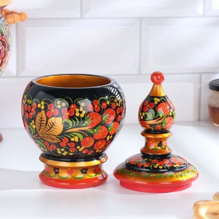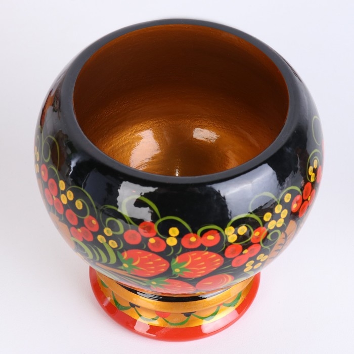 Традиционные элементы Хохломы — ягоды рябины и земляники, цветы и листья, птицы, рыбы и звери.