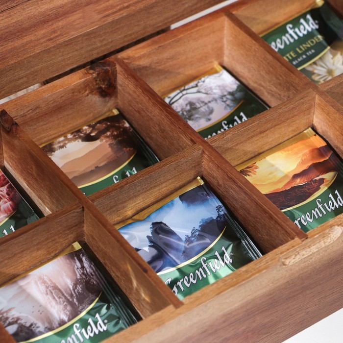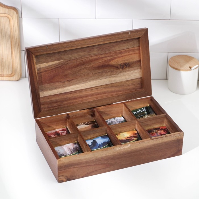 Органайзер для чая и кухонных принадлежностей, 31×17,5×8 см, 8 ячеек, тропическая акация
