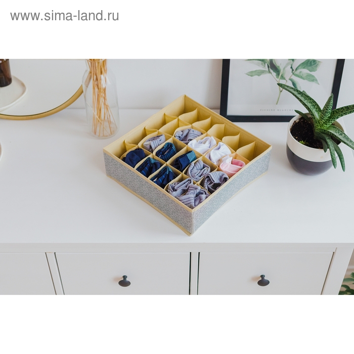 Органайзер для хранения белья Доляна «Европа», 24 ячейки, 35×30×10 см, цвет серый