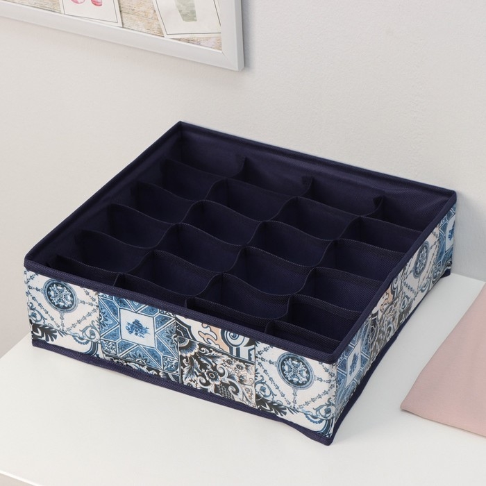 Органайзер для хранения белья Доляна «Мозаика», 24 отделения, 30×33×10 см, цвет синий