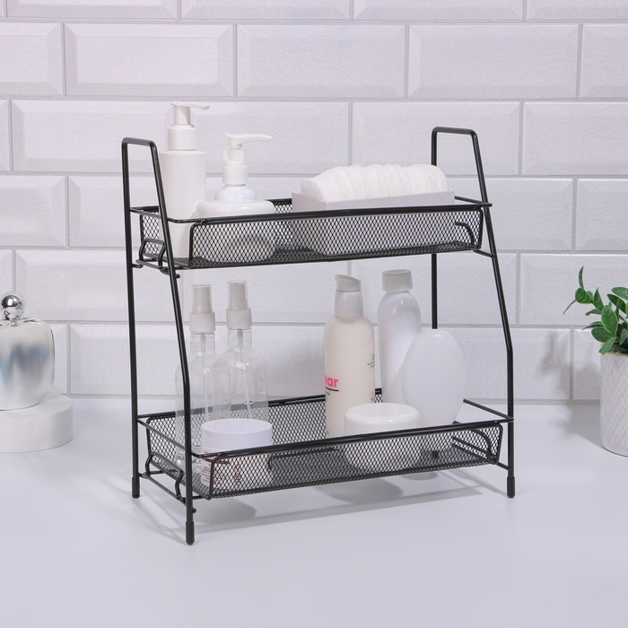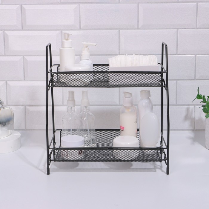 Органайзер для хранения косметических средств/принадлежностей, двухуровневый, 31 × 32 × 17 см, цвет чёрный