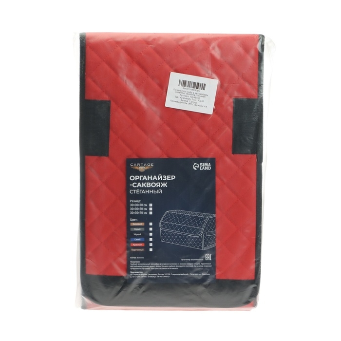 Органайзер кофр в багажник автомобиля Cartage саквояж, экокожа стеганая, 30 см, красный