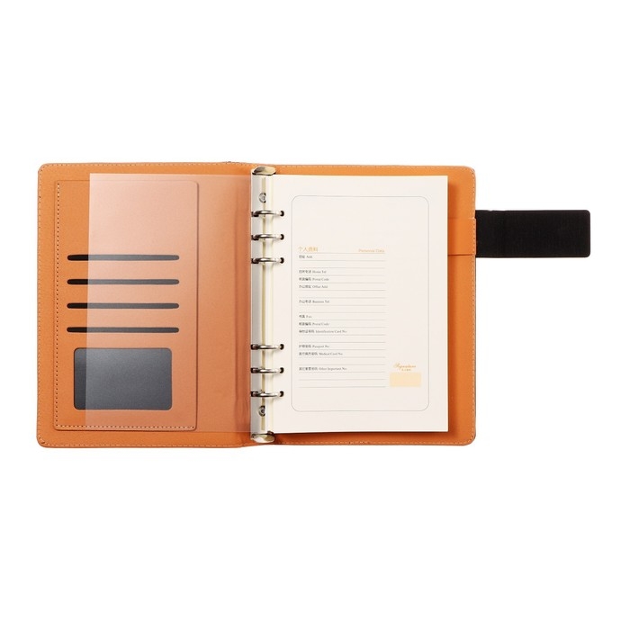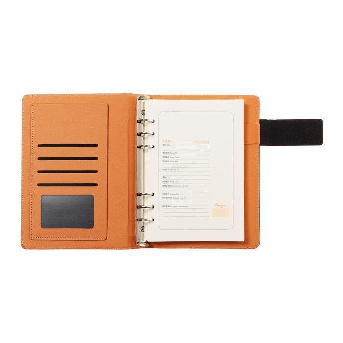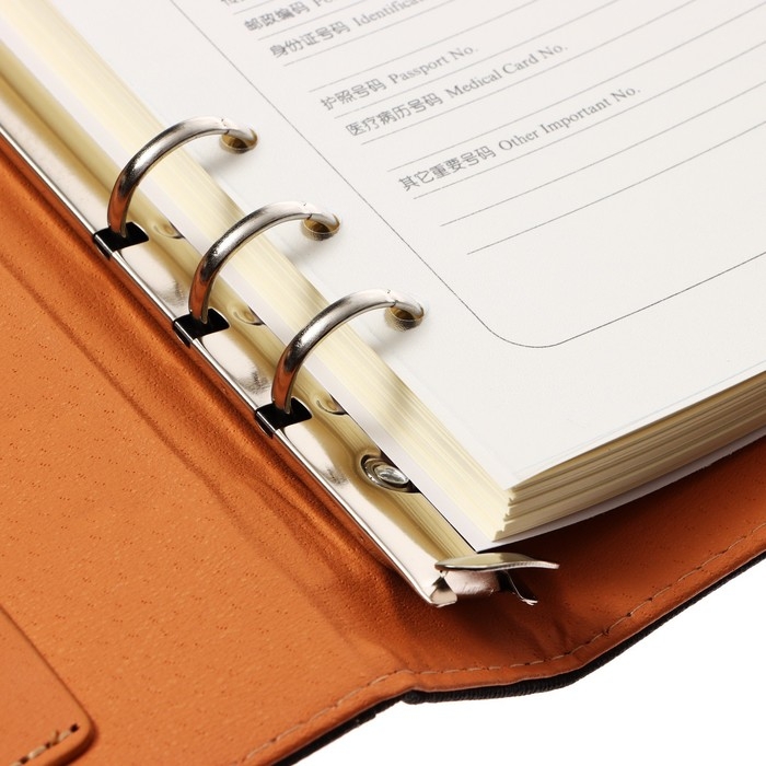 Органайзер на кольцах, формат А5, 90 листов, линия, с хлястиком, обложка кожзам МИКС