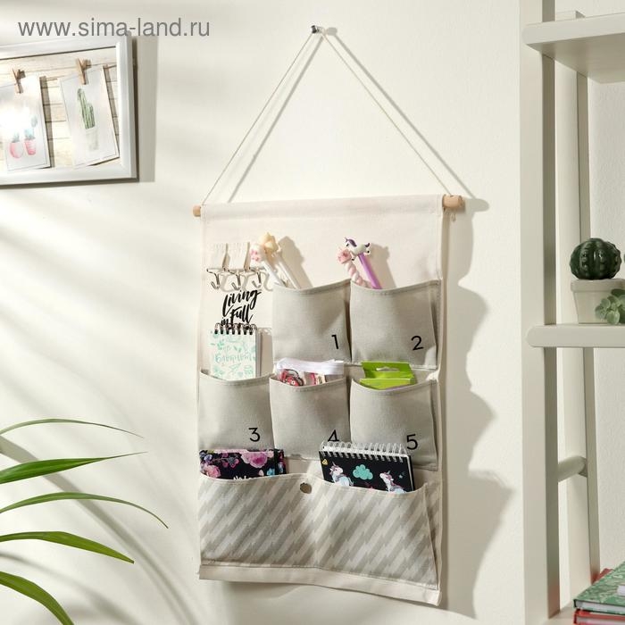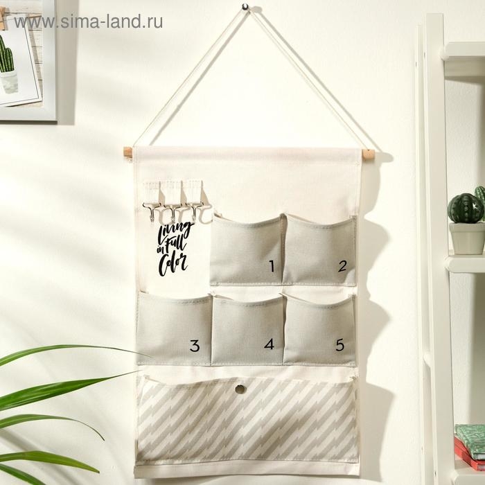 Органайзер подвесной с карманами Доляна «Молния», 6 отделений, 50×35 см, цвет серый