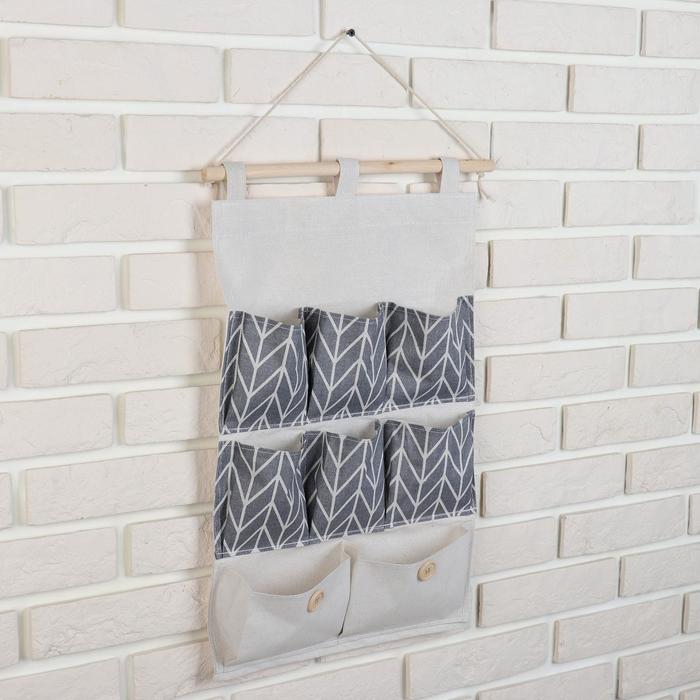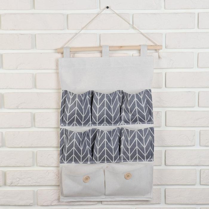 Органайзер подвесной с карманами Доляна «Зигзаг», 8 отделений, 35×53 см, цвет серый