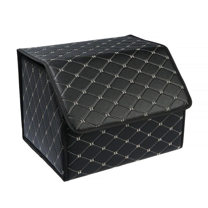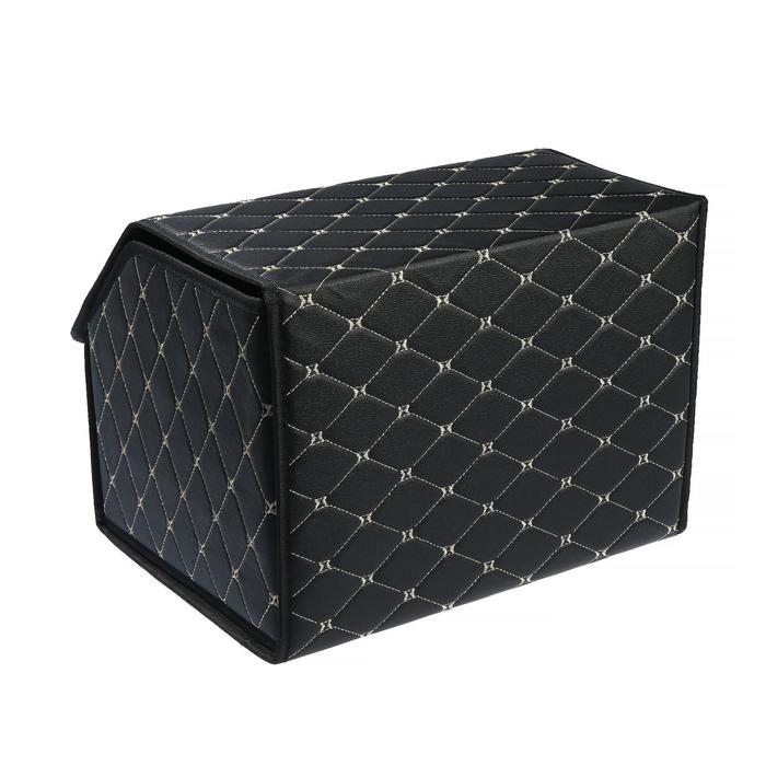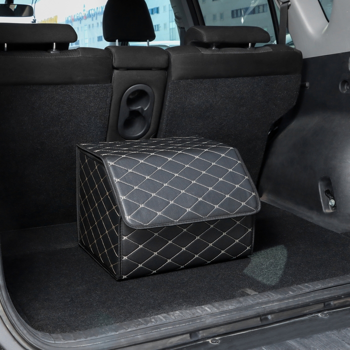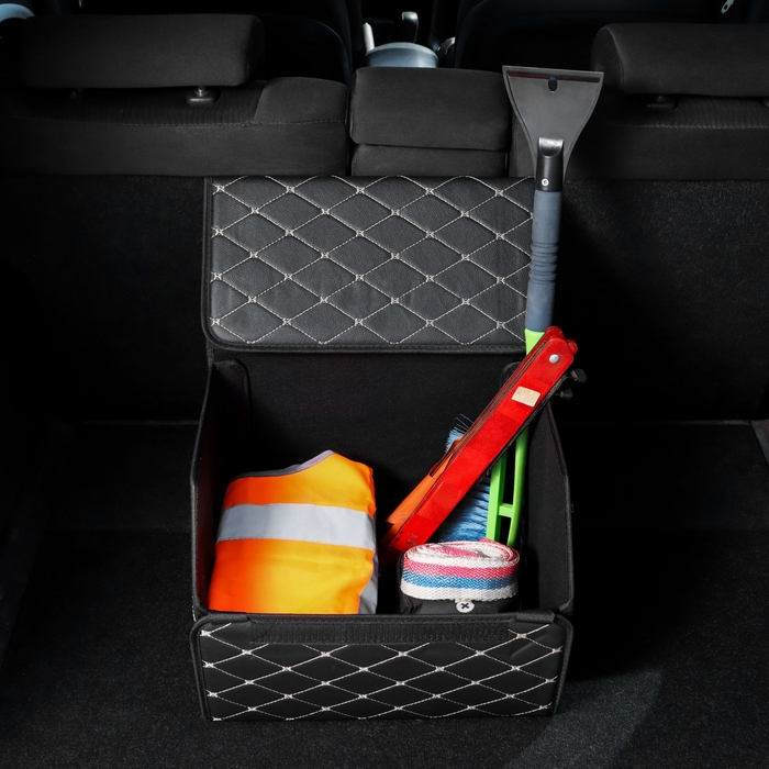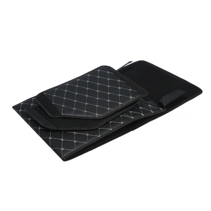 Органайзер саквояж в багажник автомобиля, 40×32×30 см, экокожа, черный с белой строчкой