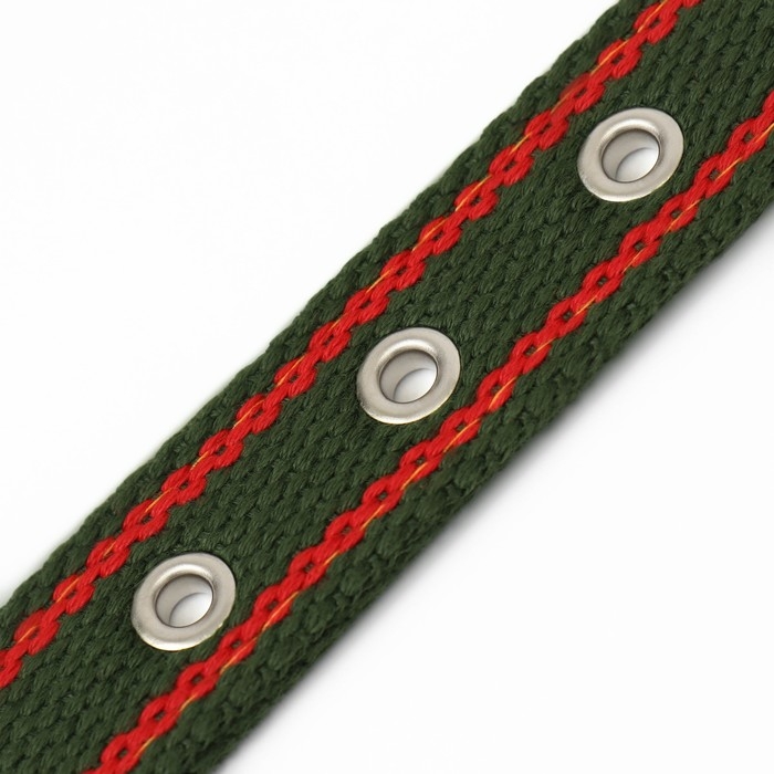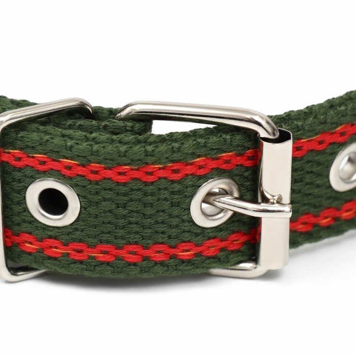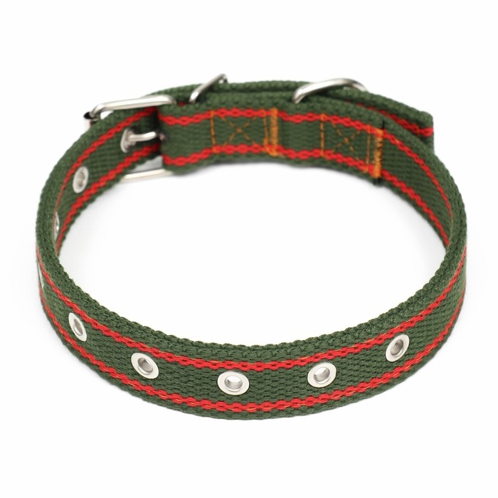 Ошейник брезентовый безразмерный двухслойный, 58 х 2,5 см, хаки/красный