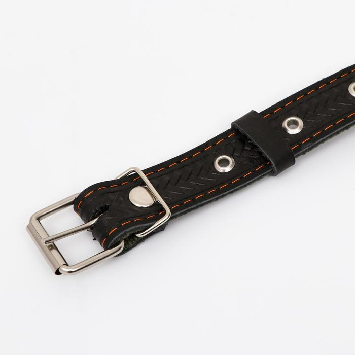 Ошейник кожаный однослойный, клёпаный, 60 х 3 см, ОШ 45-57 см, чёрный