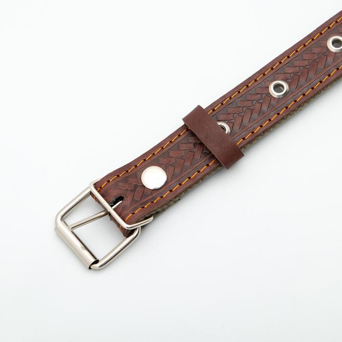 Ошейник кожаный однослойный, клёпаный, 60 х 3 см, ОШ 45-57 см, чёрный
