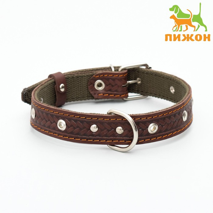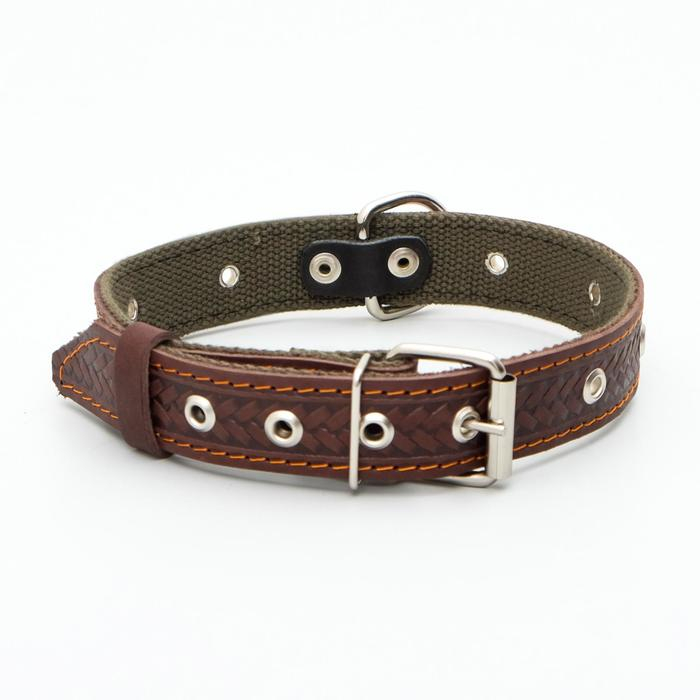 Ошейник комбинированный безразмерный, кожа/брезент, 60х3 см, ОШ 30-57 см, коричневый/зелёный