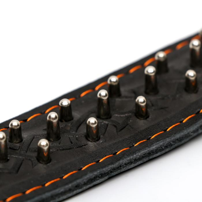 Ошейник кожаный двухслойный клёпаный "Ёж", 65 х 3,5 см, ОШ 50-60 см, чёрный