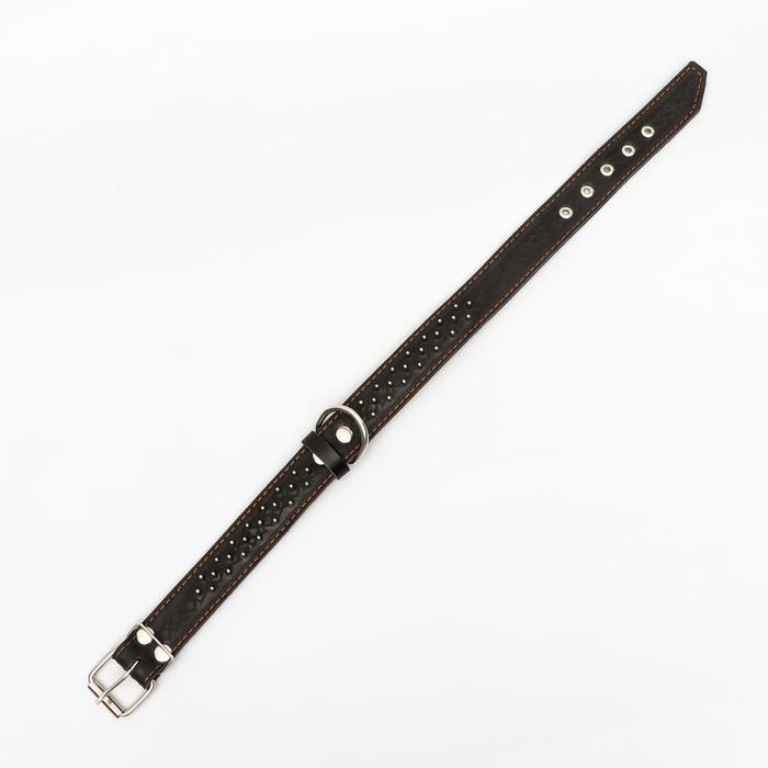Ошейник кожаный тисненый на фетре, безразмерный, 67 х 3,5 см, ОШ 31-60 см, рыжий