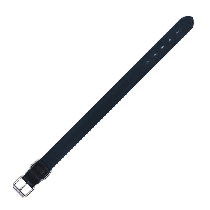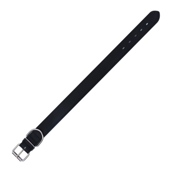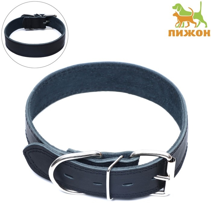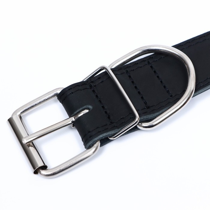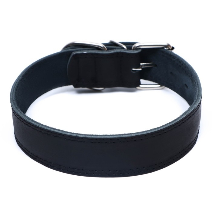 Ошейник кожаный двухслойный на замше, 3,5 см, ОШ 41-51 см, черный