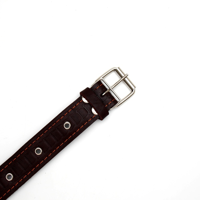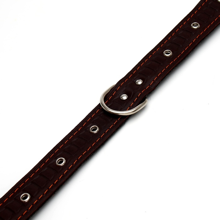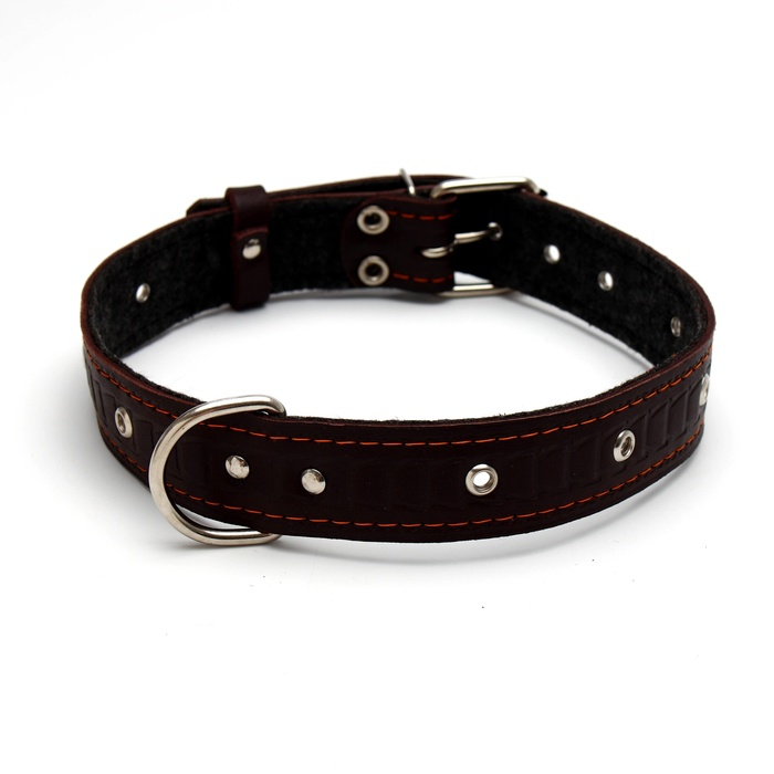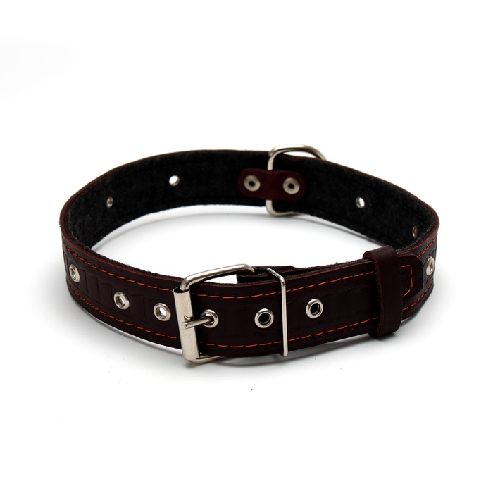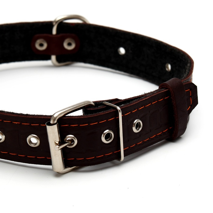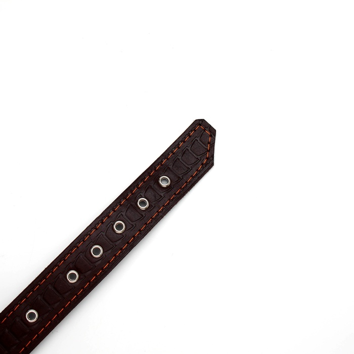 Ошейник кожаный тисненый на фетре, безразмерный, 64 х 3,5 см, ОШ 31-60 см, коричневый