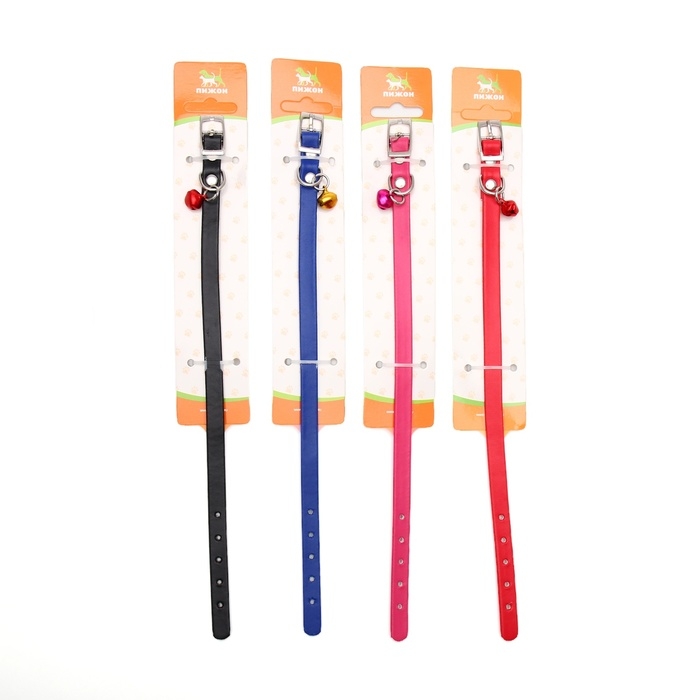 Ошейник матовый с бубенчиком, 30 х 1 см, микс цветов