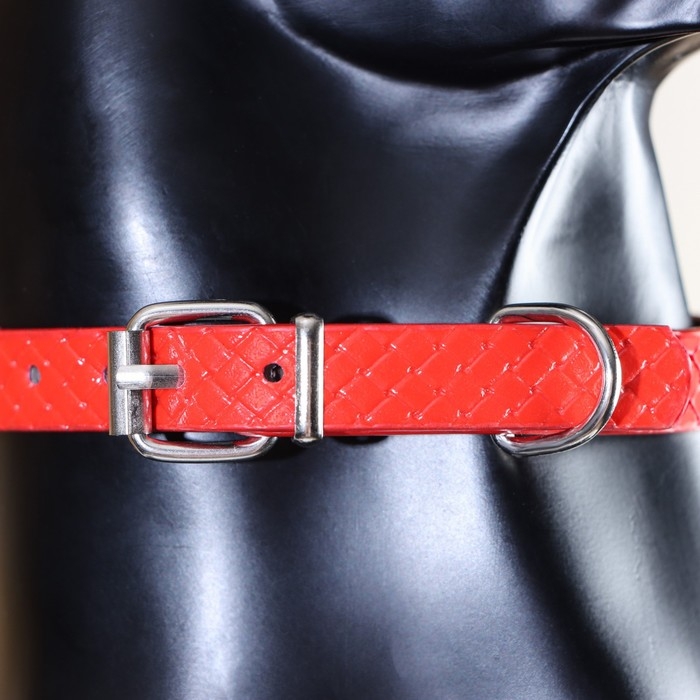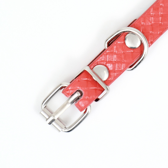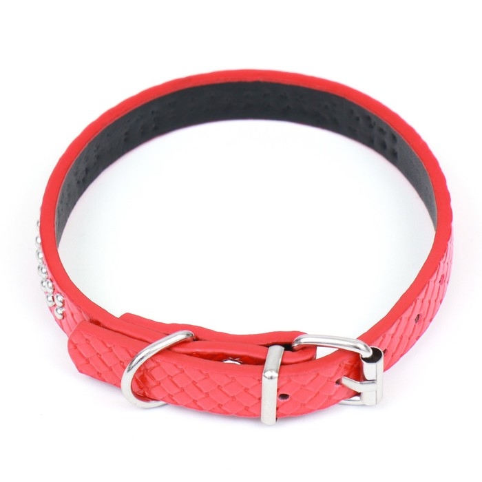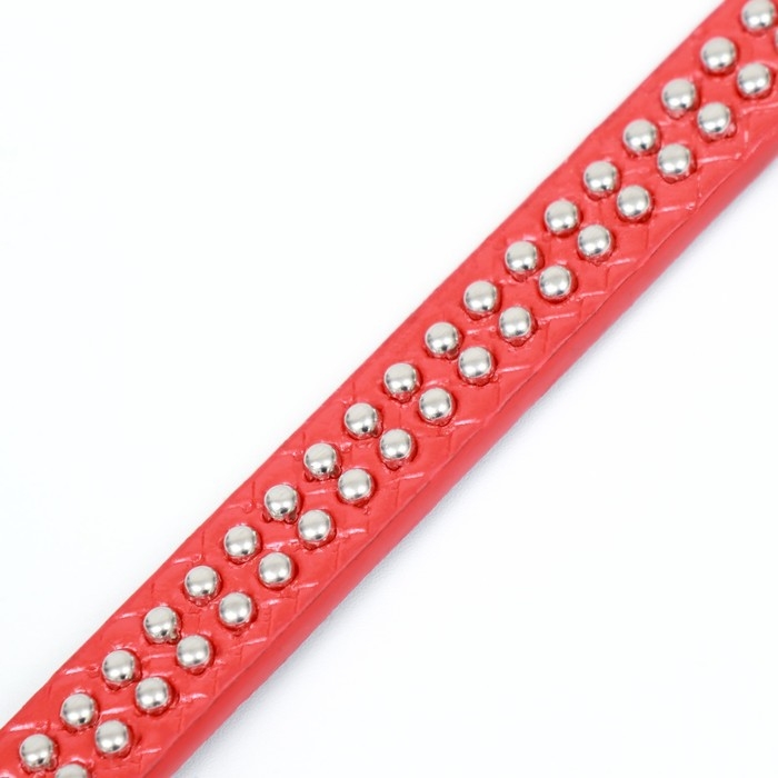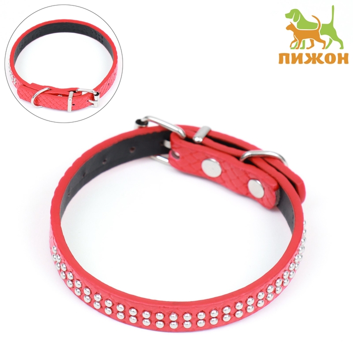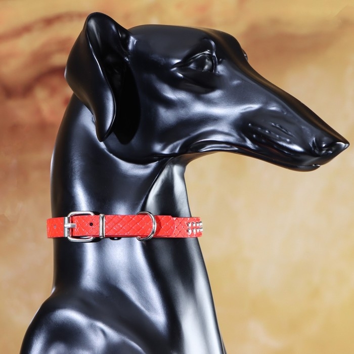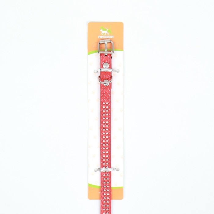 Ошейник рифленый с 2 рядами клепок, 33 х 1,2 см, ОШ 23-29, красный
