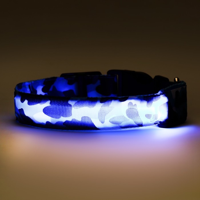 Ошейник с подсветкой "Милитари", 3 режима свечения, синий